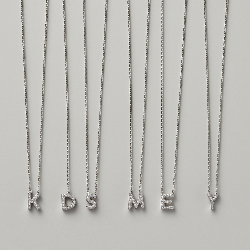 925 Sterling Silver Initial Necklace.